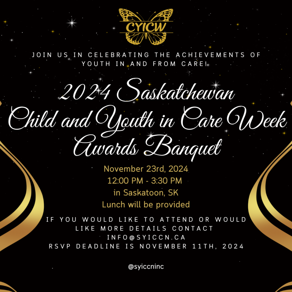 The Saskatchewan Youth in Care and Custody Network (SYICCN Inc.) is thrilled to present the Annual Child and Youth in Care Week: Celebrating Youth Voices Awards Banquet! πβ¨